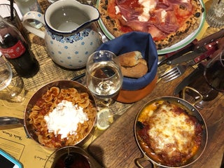 Pâtes, pizzas, cocktails et autres spécialités italiennes dans une trattoria contemporaine dotée d'un velux.