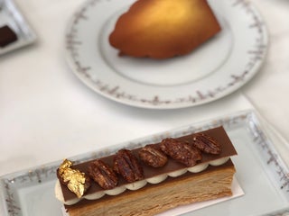 Tartes, gâteaux et viennoiseries raffinés dans une pâtisserie-boulangerie avec salon de thé au cadre soigné.
